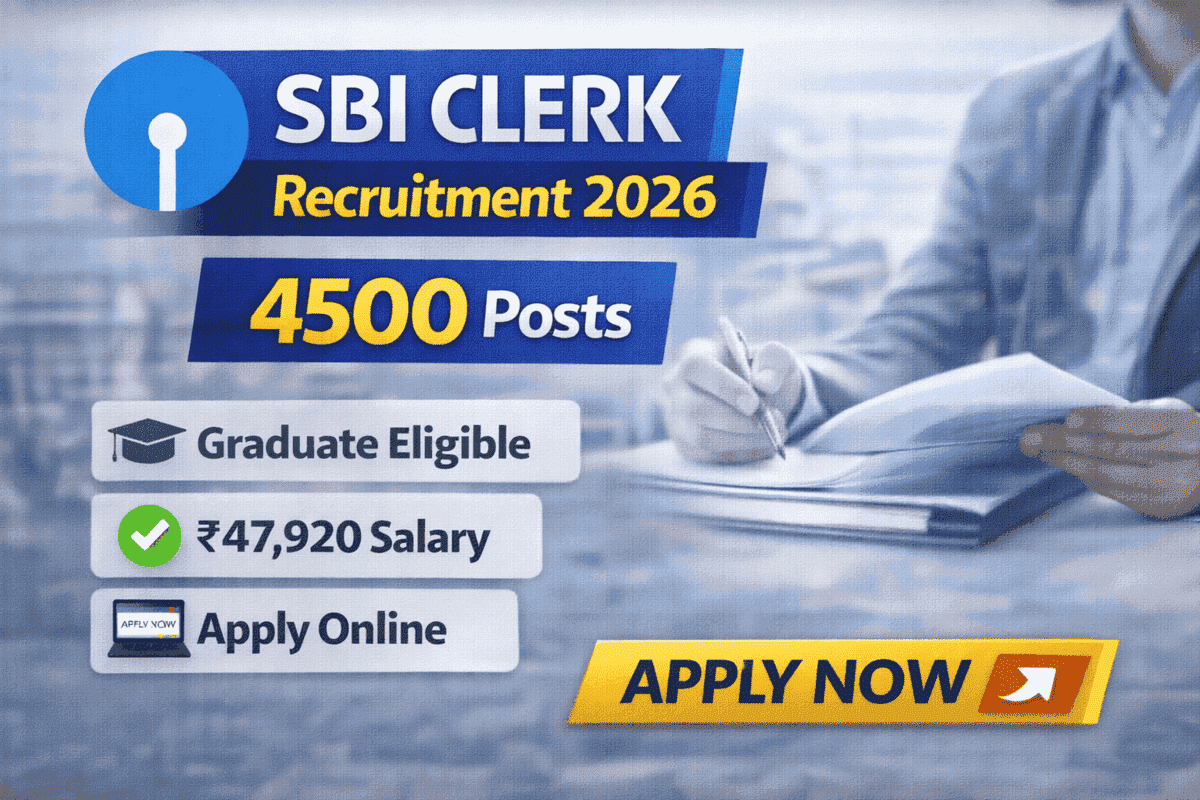 SBI Clerk Recruitment 2026 for 4500 posts. Check eligibility, age limit, salary, selection process and apply online direct link.