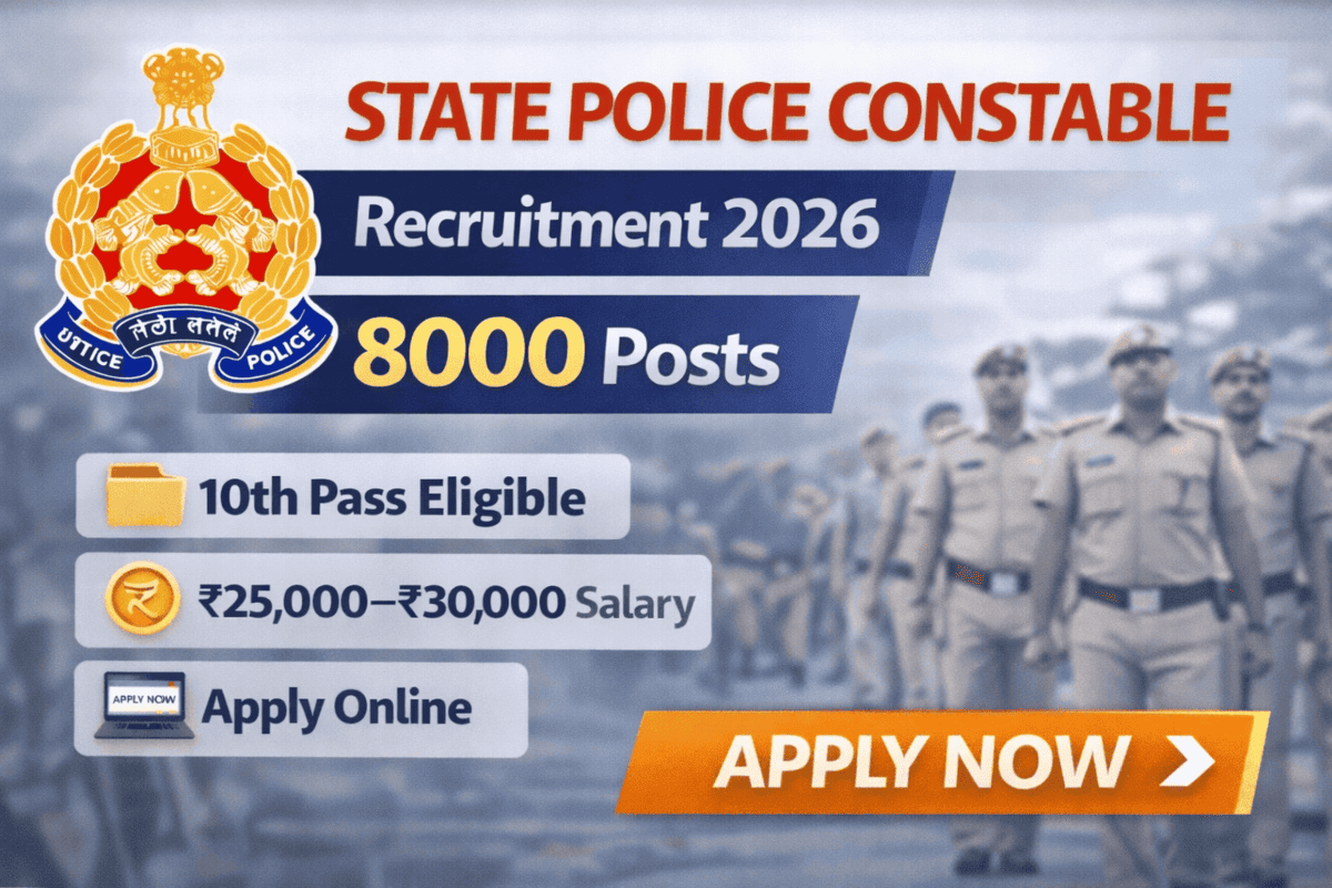 Police Constable Recruitment 2026 notification released. Check eligibility, age limit, selection process and apply online for 8000+ posts.