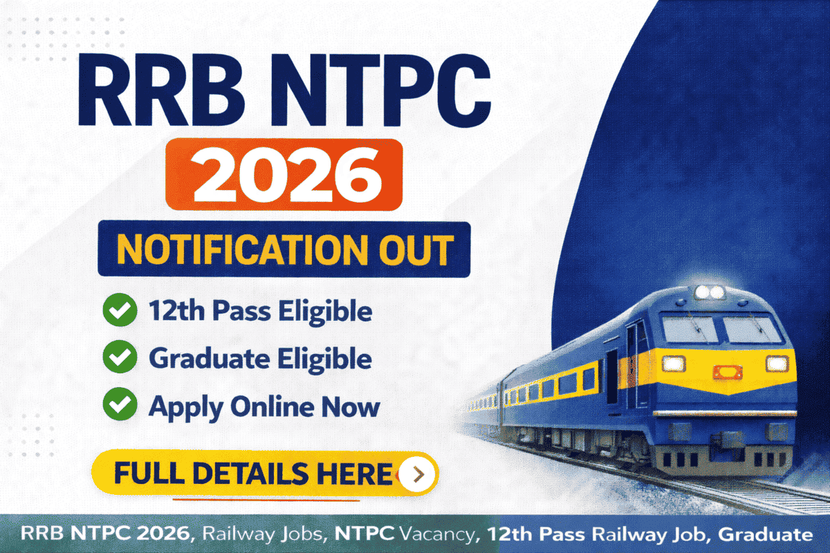 RRB NTPC 2026 notification released. Apply online for graduate and 10+2 level posts. Check eligibility, exam dates, salary and full details.