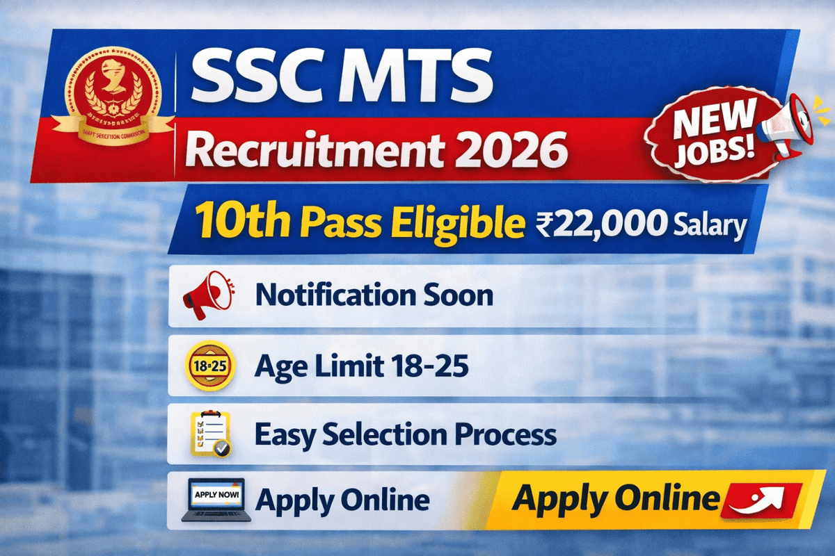 SSC MTS Recruitment 2026 is one of the most popular government job notifications for 10th pass candidates. Every year, lakhs of candidates apply for Multi Tasking Staff (MTS) posts due to easy eligibility, stable salary and job security.